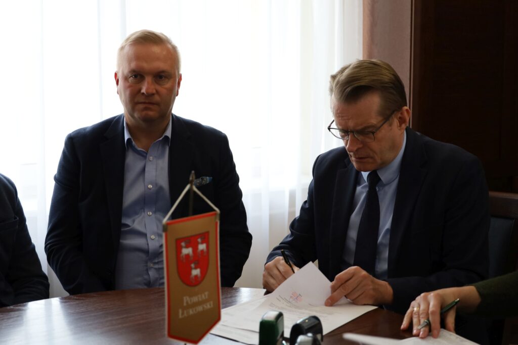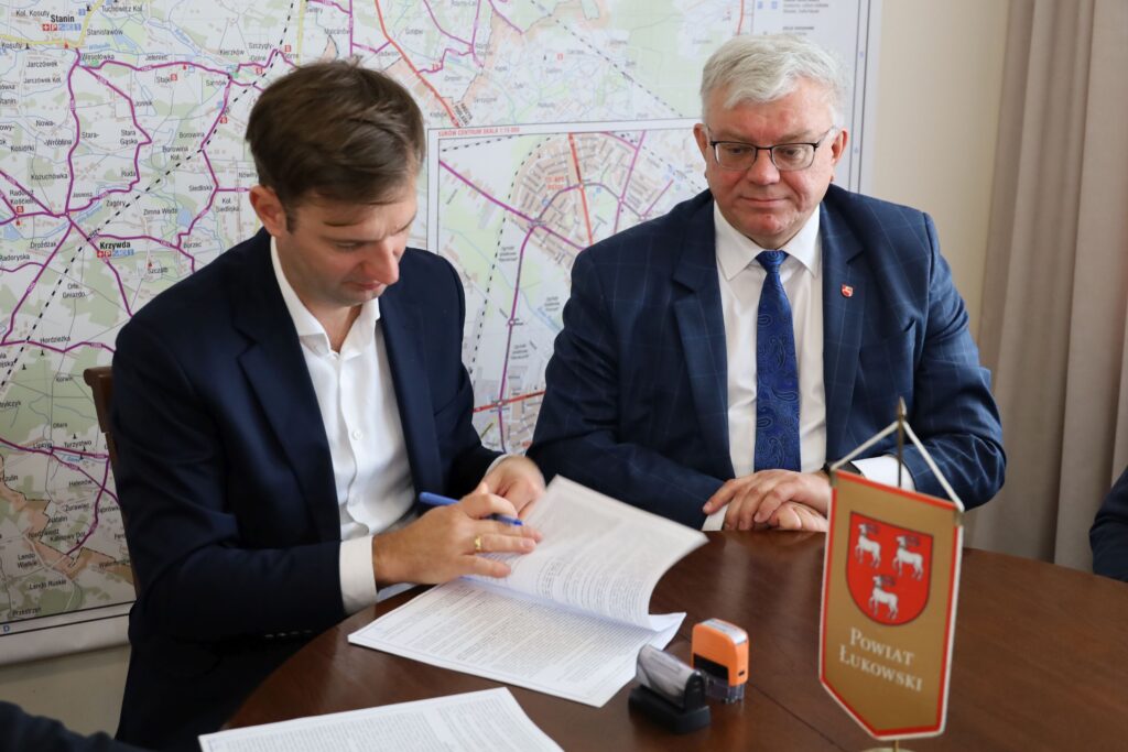 Miło nam poinformować, że w dniu 14 kwietnia 2026 r. została zawarta umowa na wykonanie zadania inwestycyjnego, na które Powiat Łukowski pozyskał 50-procentowe dofinansowanie z Rządowego Funduszu Rozwoju Dróg. Inwestycję pn. „Budowa drogi powiatowej nr 1348L od km 7+160 do km 10+104,31 na odcinku Lipiny- Dąbrówka oraz przebudowa drogi powiatowej nr 1360L od km 7+550 do km 11+780 na odcinku Wola Gułowska- Lipiny” o wartości 10 106 872,17 zł wykona Przedsiębiorstwo Robót Inżynieryjno-Drogowych S.A. z siedzibą w Łukowie.