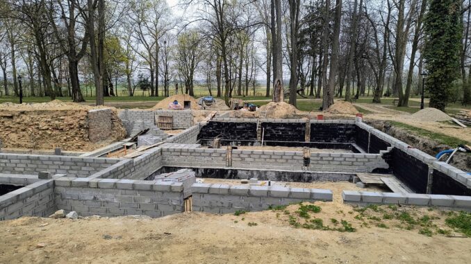 - Wykonanie fundamentów wraz z izolacjami budynku gospodarczego z łazienkami i wiaty edukacyjno-rekreacyjnej