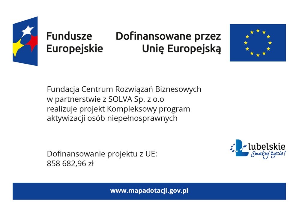 Projekt realizowany jest przez Fundację Centrum Rozwiązań Biznesowych w partnerstwie z firmą szkoleniowo-doradczą SOLVA Sp. z o.o.
