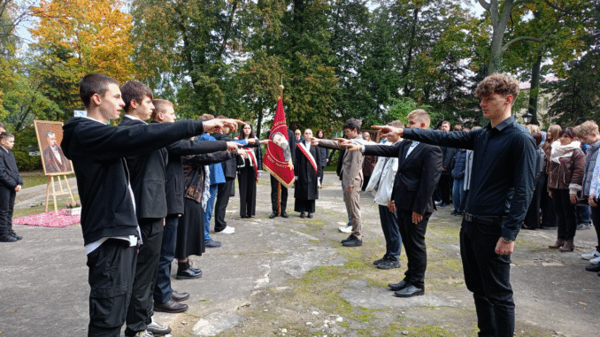 W środę, 15 października br., uczniowie Zespołu Szkół NR 1 im. Henryka Sienkiewicza obchodzili Dzień Patrona Szkoły. Jest to dzień uroczystego ślubowania na sztandar szkoły uczniów klas pierwszych. To wyjątkowe wydarzenie na stałe wpisane jest w kalendarz szkolnych uroczystości i stanowi ważny moment w życiu każdego ucznia. Tegoroczne ślubowanie pierwszoklasistów przejdzie do historii szkoły, ponieważ miało nietypowy przebieg. Po raz pierwszy msza święta sprawowana była w kościele w Okrzei, w którym ochrzczony został Henryk Sienkiewicz i po raz ostatni pierwszoklasiści ślubowali na fundamentach dawnego dworu babci pisarza, ponieważ budynek będzie niebawem odbudowywany. Zgodnie z wieloletnią tradycją uczniowie klas pierwszych Zespołu Szkół Nr 1 w Łukowie odwiedzają miejsce urodzenia swojego patrona – Henryka Sienkiewicza. Tegoroczni pierwszoklasiści wybrali się więc do Woli Okrzejskiej, gdzie złożyli ślubowanie. Opiekę nad nimi sprawowali: pan Dyrektor – Tadeusz Federczyk, wychowawcy i grupa nauczycieli. O godzinie 8.45 pięć autokarów wyruszyło z parkingu szkolnego w kierunku Okrzei. Uroczystość rozpoczęła się o godzinie 10.00 mszą świętą w Kościele Świętych Apostołów Piotra i Pawła w Okrzei, którą sprawował ksiądz Kanonik Sylwester Borkowski – proboszcz tej parafii. Dalsze uroczystości miały miejsce w Woli Okrzejskiej. W gościnnych progach muzeum serdecznie powitała nas pani Dyrektor – Magdalena Mitura (absolwentka naszej szkoły). Po wprowadzeniu sztandaru i odśpiewaniu hymnu państwowego, pan dyrektor Tadeusz Federczyk powitał wszystkich zebranych i skierował do pierwszoklasistów kilka ciepłych słów. Kulminacyjnym punktem programu uroczystości było ślubowanie uczniów klas pierwszych na sztandar szkoły, po którym życzenia do nich skierowali: dyrektor naszej Szkoły p. Tadeusz Federczyk, Dyrektor Muzeum Henryka Sienkiewicza w Woli Okrzejskiej – pani Magdalena Mitura, a w imieniu Rady Samorządu Uczniowskiego – prowadzący uroczystość – Karol Gontarz kl. 5Tel. Oficjalna część niecodziennej uroczystości zakończyła się odprowadzeniem sztandaru. Po ślubowaniu przyszedł czas na zwiedzanie muzeum i spacer po parku. To wydarzenie na długo pozostanie w naszej pamięci.
