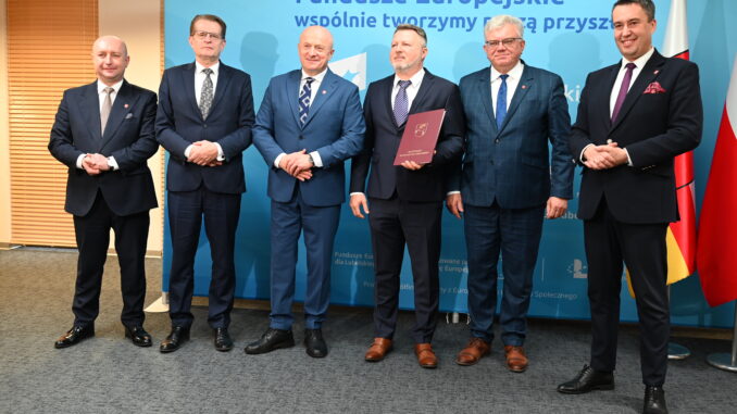 W dniu 15 kwietnia 2026 r. w Urzędzie Marszałkowskim w Lublinie odbyło się uroczyste wręczenie umowy o dofinansowanie projektu realizowanego przez Przedsiębiorstwo Komunikacji Samochodowej w Łukowie S.A.