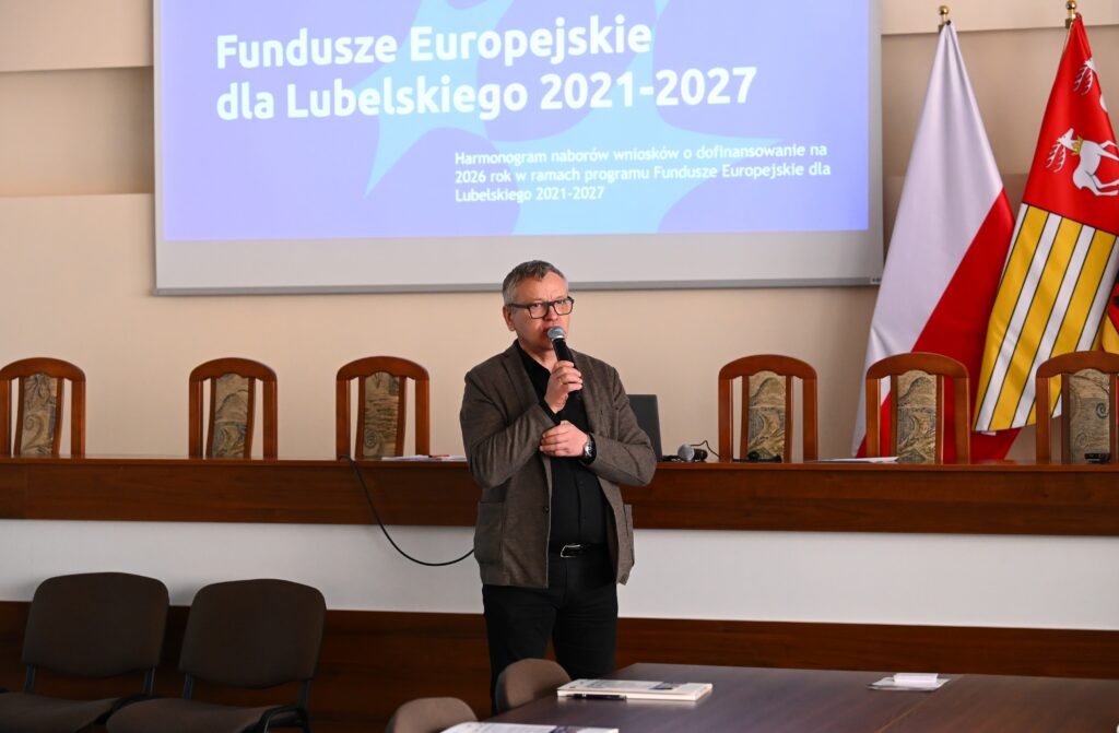 - Pan Mariusz Rudzki, który omówił nabory w ramach działań programu Fundusze Europejskie dla Lubelskiego 2021–2027 realizowane przez DW EFRR,