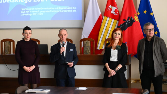 W dniu 15 kwietnia 20226 r. w sali konferencyjnej Starostwa Powiatowego w Łukowie odbyło się spotkanie poświęcone aktualnym i planowanym naborom wniosków o dofinansowanie w ramach Programu Fundusze Europejskie dla Lubelskiego 2021–2027 oraz programów krajowych.