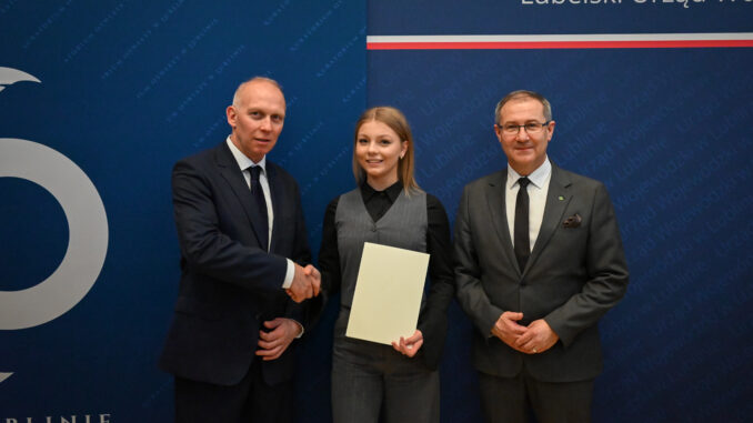 W czwartek, 12 lutego 2026 roku, w Sali Błękitnej Lubelskiego Urzędu Wojewódzkiego odbyła się uroczysta gala wręczenia dyplomów stypendystom Prezesa Rady Ministrów. Wśród wyróżnionych znalazła się przedstawicielka Zespołu Szkół nr 3 im. Władysława Stanisława Reymonta w Łukowie – Alicja Sulej.