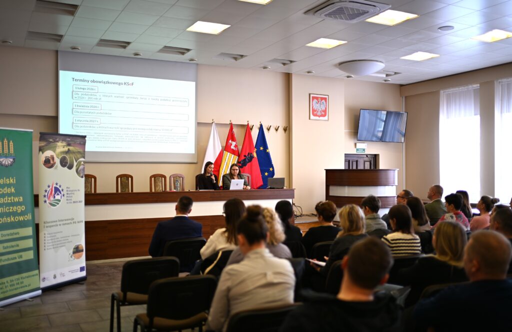 W dniu 10 lutego 2026r w Starostwie Powiatowym w Łukowie odbyło się szkolenie informacyjne dotyczące Krajowego Systemu e-Faktur (KSeF), skierowane do przedstawicieli organizacji pozarządowych, jak również kół gospodyń wiejskich, ochotniczych straży pożarnych, klubów sportowych, stowarzyszeń i innych organizacji pozarządowych. Wydarzenie cieszyło się bardzo dużym zainteresowaniem.