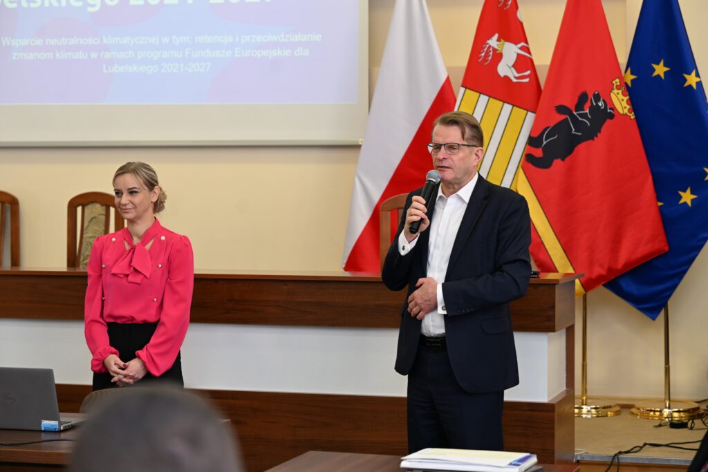 Podczas szkolenia przedstawiciele Urzędu Marszałkowskiego Województwa Lubelskiego omówili m.in. działania związane z dostosowaniem do zmian klimatu, zapobieganiem powodziom i suszom oraz wsparciem w obszarze edukacji, a także odpowiadali na pytania uczestników podczas konsultacji eksperckich. Spotkanie zostało zorganizowane dla przedstawicieli gmin i miast z terenu Powiatu Łukowskiego.