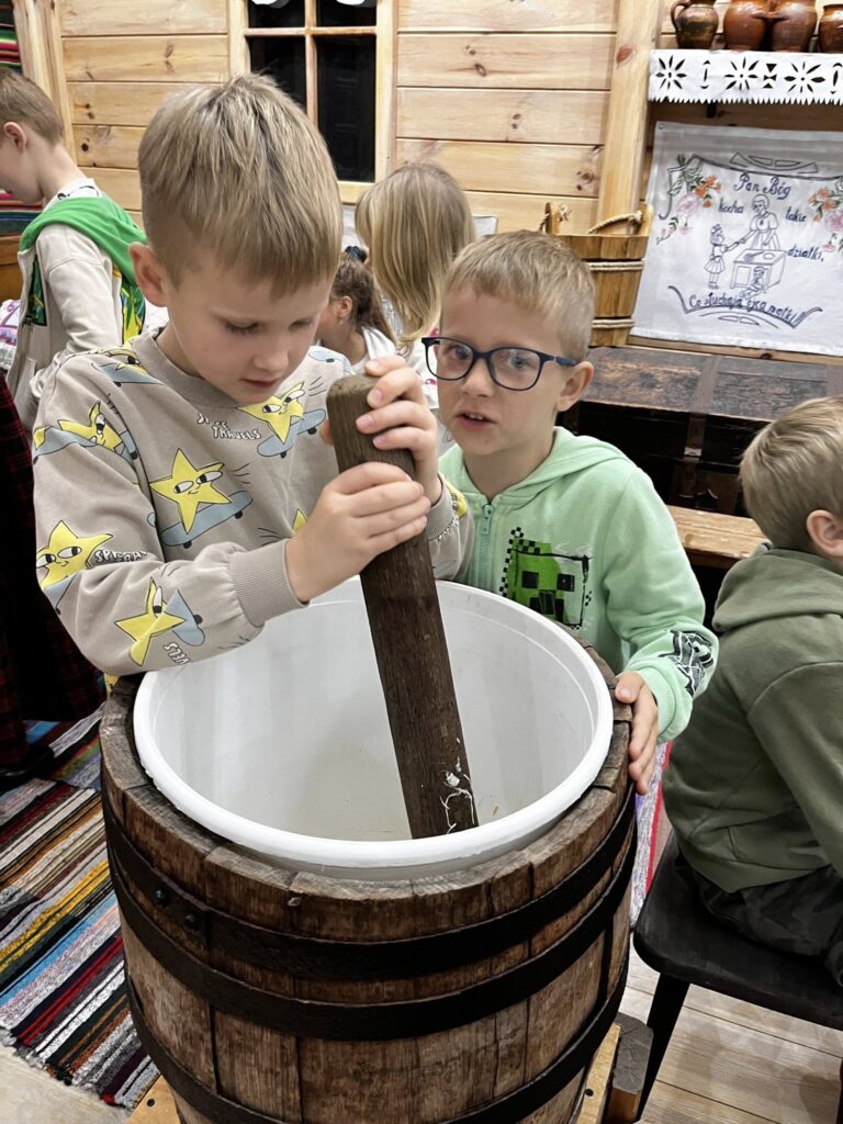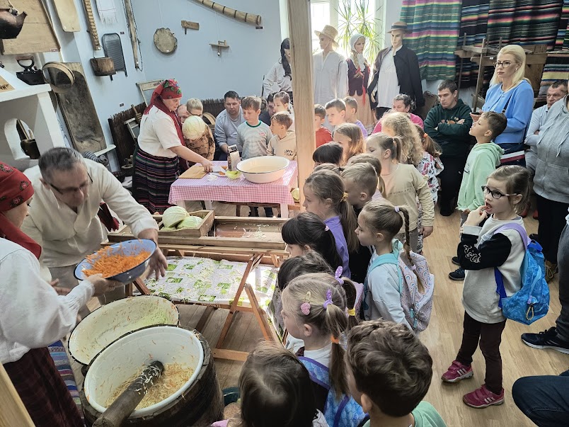Organizatorzy zadbali o autentyczny klimat wydarzenia – wnętrze tradycyjnej chaty chłopskiej, będące częścią ekspozycji muzealnej, pozwoliło uczestnikom poczuć atmosferę dawnych czasów. Najwięcej radości dostarczyły najmłodszym uczestnikom czynności praktyczne – szczególnie szatkowanie i ubijanie kapusty w beczce.