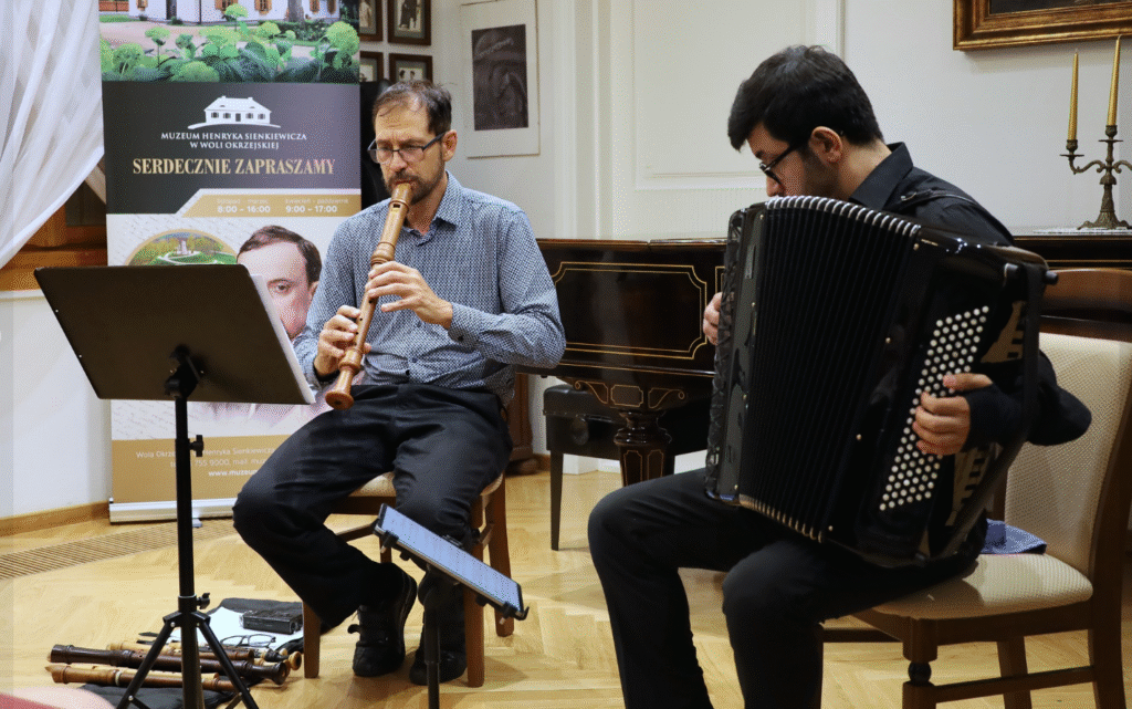 W niedzielę, 13 lipca 2025 r., w Muzeum Henryka Sienkiewicza w Woli Okrzejskiej odbył się trzeci koncert z cyklu Koncertów Kameralnych, zorganizowany z okazji imienin Henryka Sienkiewicza. Publiczność miała okazję wysłuchać niezwykłego koncertu w wykonaniu włoskiego duetu: Giorgio Matteoli (Rzym) – flety blokowe Pietro Pardino (Cosenza) – akordeon Ich muzyka oczarowała słuchaczy i stworzyła niezapomnianą atmosferę – subtelną, poruszającą i pełną pasji. Wśród gości obecni byli m.in.: Ryszard Szczygieł Radny Sejmiku Województwa Lubelskiego, Dariusz Szustek Starosta Łukowski, Sławomir Rzymowski Członek Zarządu Powiatu Łukowskiego, Danuta Bosek Radna Powiatu Łukowskiego. Wydarzenie zostało zorganizowane przez Muzeum Henryka Sienkiewicza w Woli Okrzejskiej oraz Fundację Wydźwięk Kultury, a Patronat Honorowy nad koncertem objął Starosta Łukowski Dariusz Szustek.