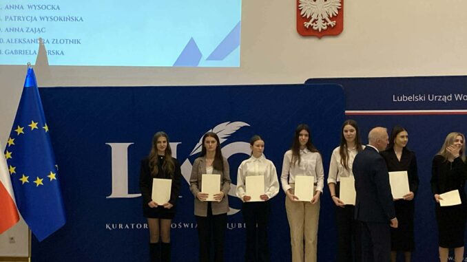 Uroczyste wręczenie dyplomów Stypendystom miało miejsce 12 lutego w Lubelskim Urzędzie Wojewódzkim. Dyplomy zostały przekazane przez Lubelskiego Kuratora Oświaty, Tomasza Szabłowskiego.