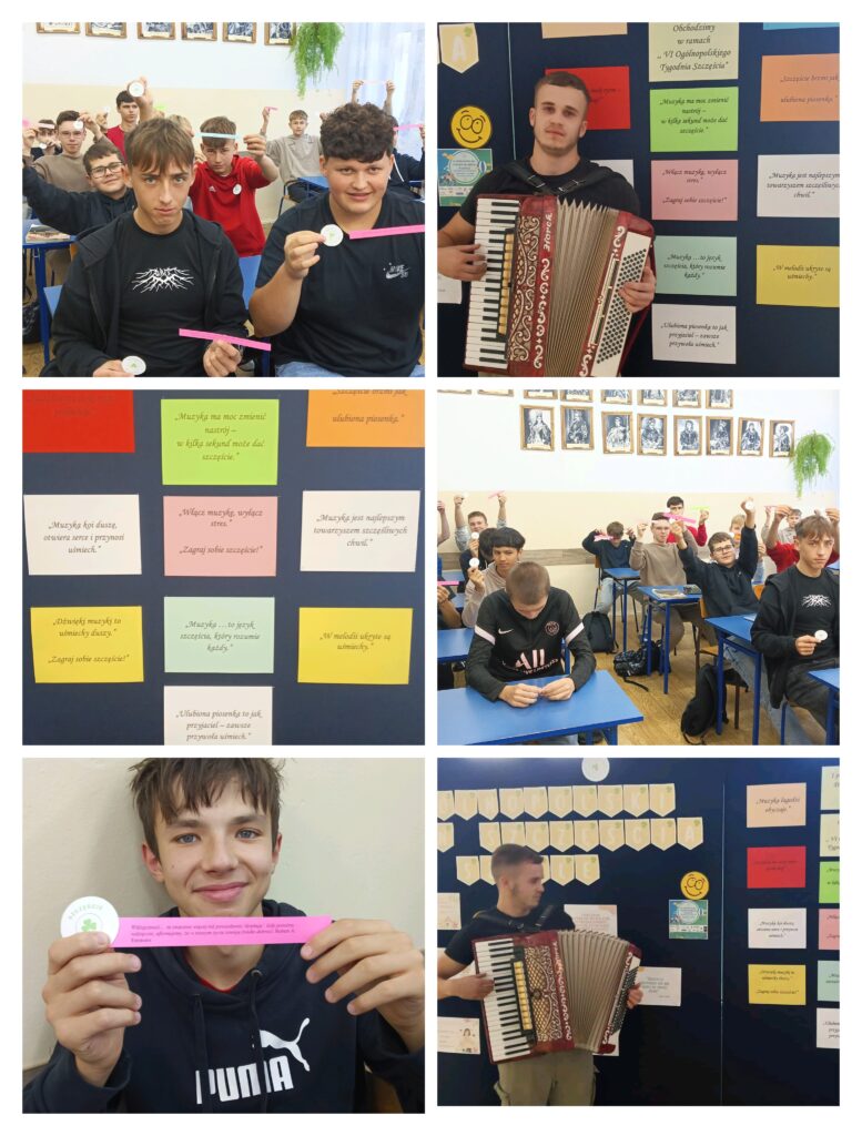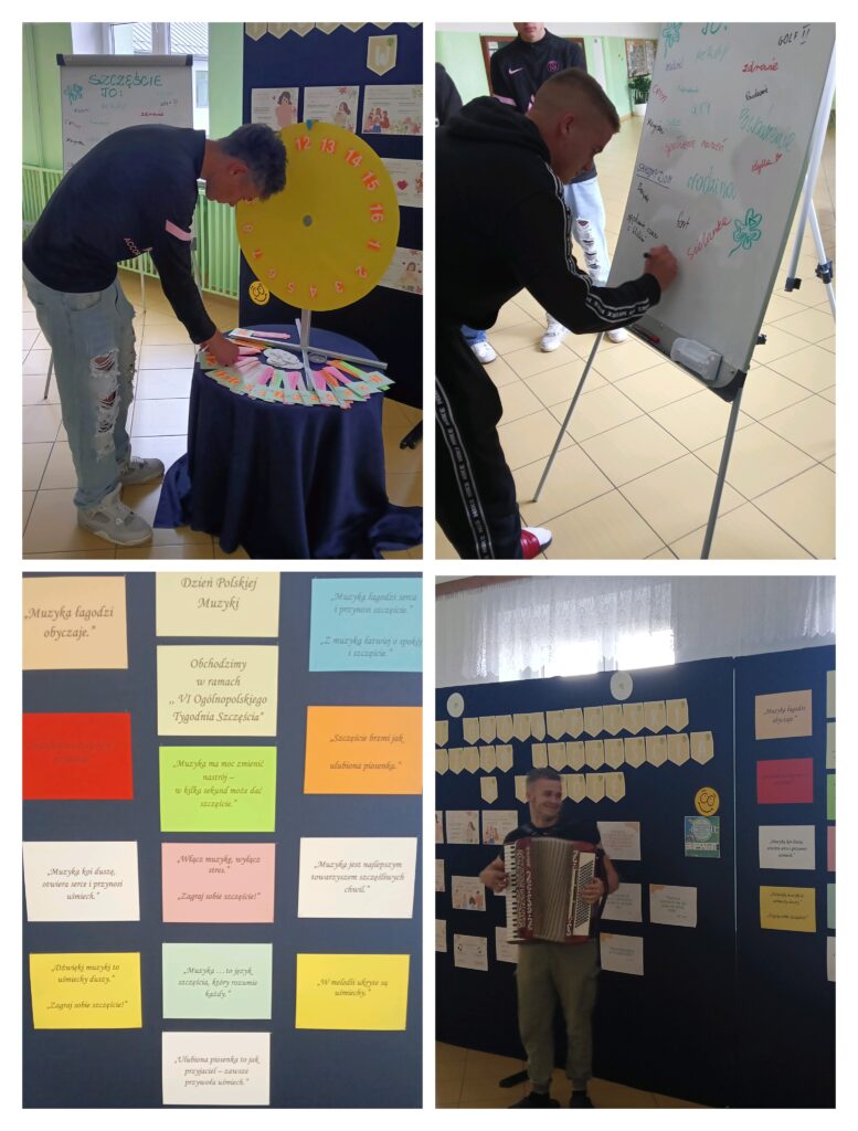 Na szkolnym korytarzu rozbrzmiewała muzyka, która miała przywołać pozytywne emocje i skojarzenia ze szczęściem. Była to także okazja do zaprezentowania talentów muzycznych uczniów. Na szkolnym korytarzu wystąpili: