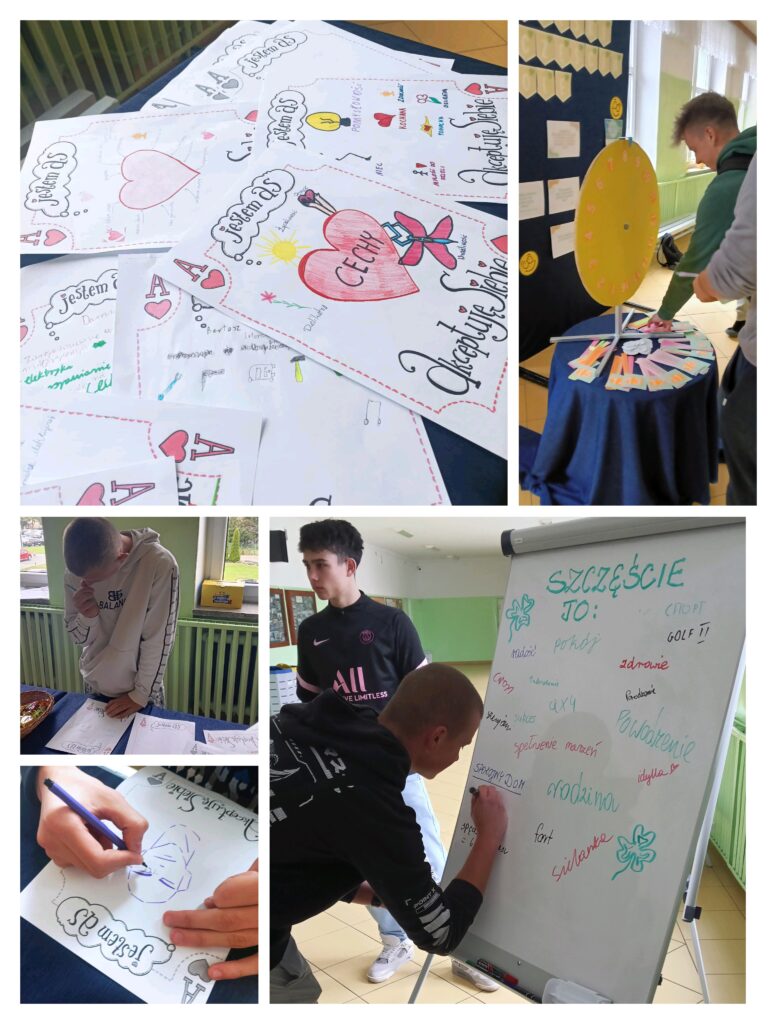 Tego dnia uczniowie pracowali z kartą pracy „Jestem As – Akceptuję siebie”, której celem było poczucie wzmacniania swojej wartości i budowanie pozytywnego wizerunku.