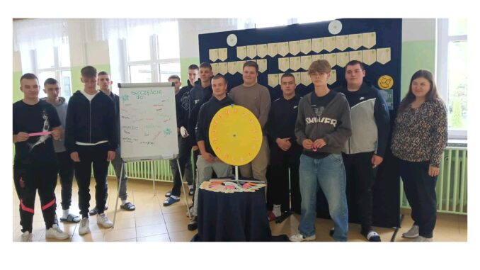 wśród społeczności szkolnej. Na szkolnym korytarzu pojawiło się Koło Fortuny, za pomocą którego uczniowie mogli wylosować inspirujący cytat o szczęściu – do refleksji lub rozmowy z innymi. Dodatkowo powstała mapa myśli o szczęściu – uczniowie wpisywali na tablicy, z czym kojarzy im się szczęście. Została także przygotowana wystawa okolicznościowa – informacyjna o akcji, a uczennice z koszyczkiem pełnym cytatów przemierzały korytarze, odwiedzając klasy, aby uczniowie, nauczyciele i pracownicy szkoły mogli wylosować inspirujący cytat o szczęściu oraz otrzymać trójlistną koniczynkę – logo akcji. Symboliczny gest – czwarty listek pozostawał pusty, by uczniowie mogli „przekazać szczęście” dalej i dzielić się nimi z innymi.