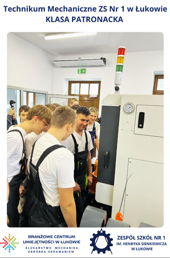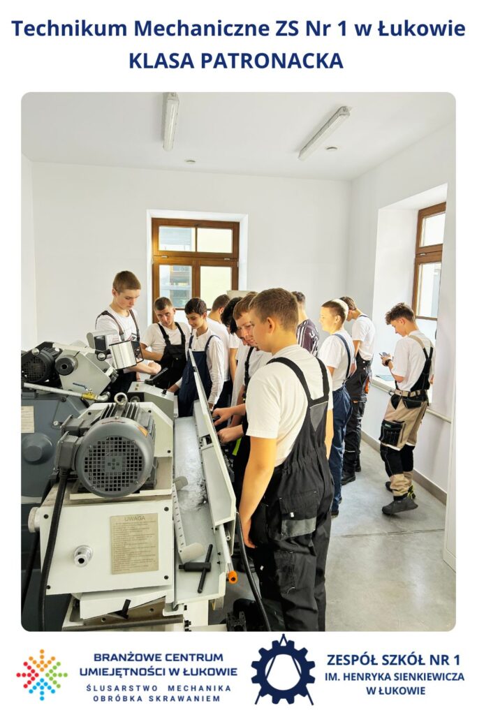 Młodzież z klasy patronackiej Technikum Mechanicznego w Zespole Szkół Nr 1 im. Henryka Sienkiewicza w Łukowie odbyła swoją pierwszą wizytę w Branżowym Centrum Umiejętności w Łukowie. Grupa, objęta patronatem Centrum, miała okazję zapoznać się z nowoczesną infrastrukturą dydaktyczną oraz poznać szerokie możliwości, jakie BCU oferuje w zakresie kształcenia praktycznych umiejętności zawodowych.