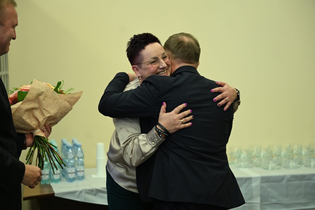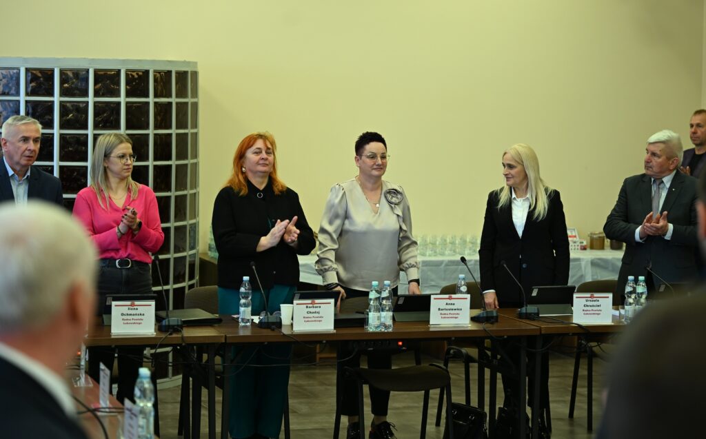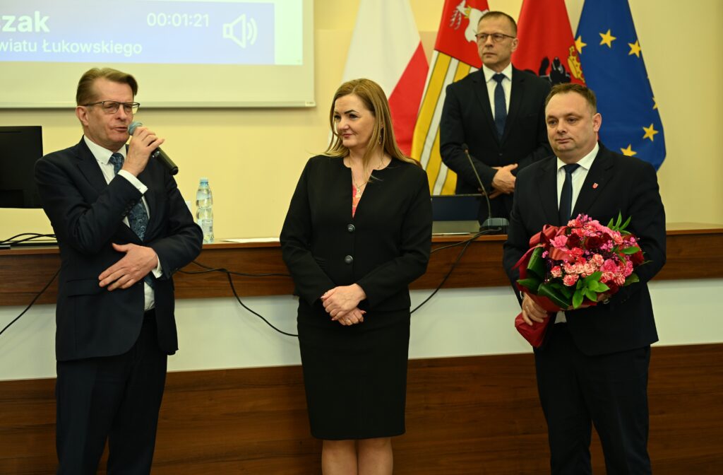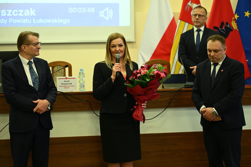 Podczas dzisiejszej sesji Rady Powiatu Łukowskiego podziękowano Pani Danucie Bosek za dotychczasową pracę w Radzie Powiatu w związku z objęciem funkcji Dyrektora Powiatowego Urzędu Pracy w Łukowie. Złożono wyrazy uznania za zaangażowanie oraz wkład w rozwój naszego powiatu. Jednocześnie mandat radnej objęła Pani Anna Bartosiewicz, która podczas sesji złożyła ślubowanie. Nowej Radnej życzymy powodzenia, owocnej pracy oraz wielu sukcesów w działaniach na rzecz mieszkańców Powiatu Łukowskiego.